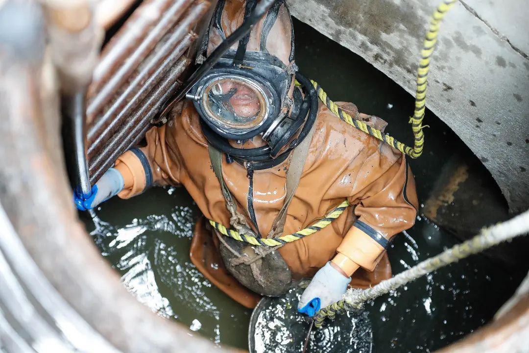 这次作业,难度不大。钟连华下井后半小时,就顺利完成了水底清淤,给出了出水信号。“今天这个管道积泥量不多,也没啥味道,但井下其实很危险,会有有害气体,所以下去前先要用有毒有害检测仪检测。下面还有水流、暗流、泥浆等,可能会把人冲走,所以我得带上保险绳,背上铅饼。“