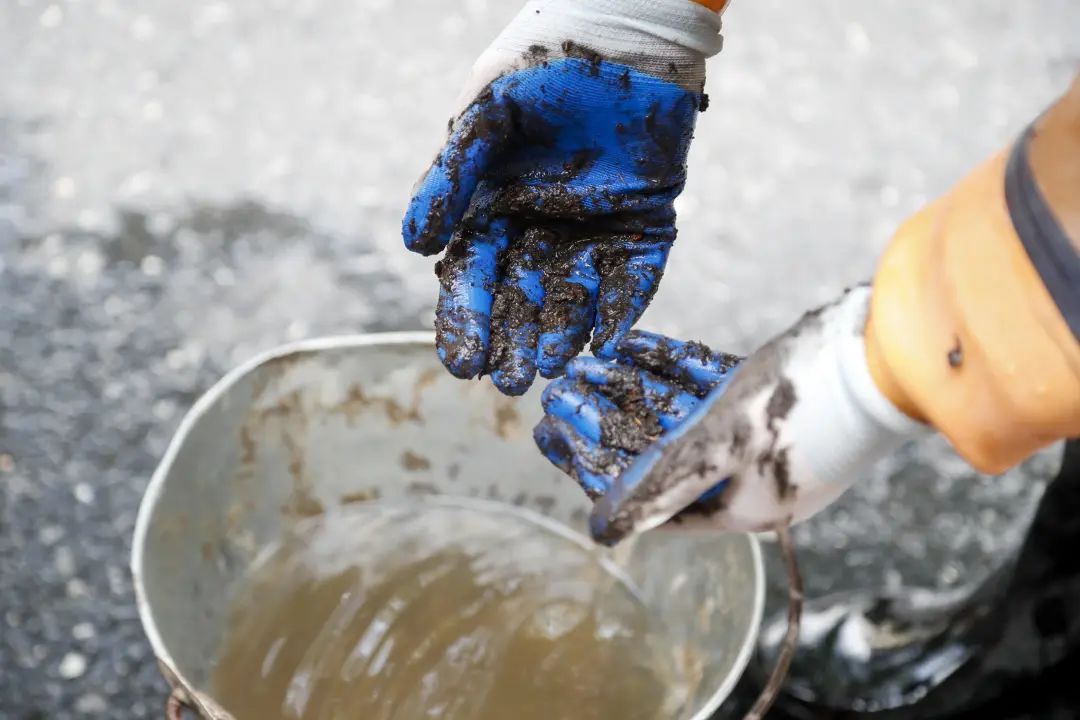对于“蛙人”而言,井下的漆黑一片是最大的挑战。这时,他们的双手就是眼睛,需要靠它们去寻找方向,去清理异物。“我第一次下井时,下面伸手不见五指,会产出莫名的恐惧感,急着想上来。现在习惯了,遇到管道积泥硬化情况,最长要在水下作业几小时。有时候还得借助空压机把硬块打碎,才能一点点运上来。”钟连华告诉记者。