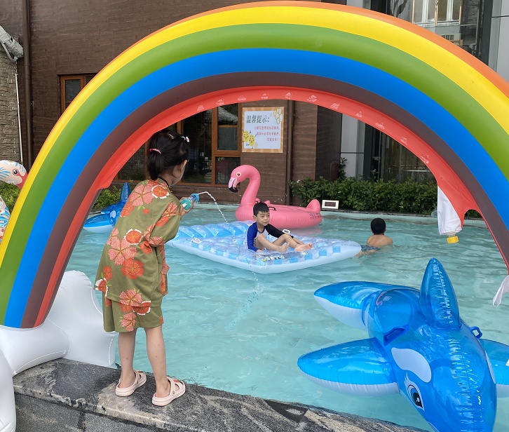 汤泉在户外区特别为夏季开设了嘻戏池,夏季可以给爱玩水的小朋友带去夏日乐趣。户外的泡汤池每一个都非常有特色,玫瑰汤池、养生汤池等,躺在树荫下,泡着温泉,享受这一刻的夏日悠长。鸟语花香萦绕身旁,让泡汤成为极致的享受。