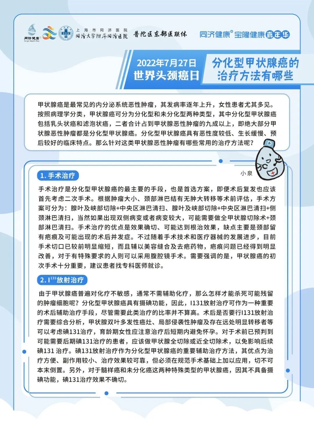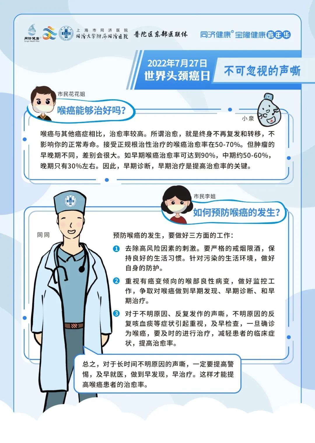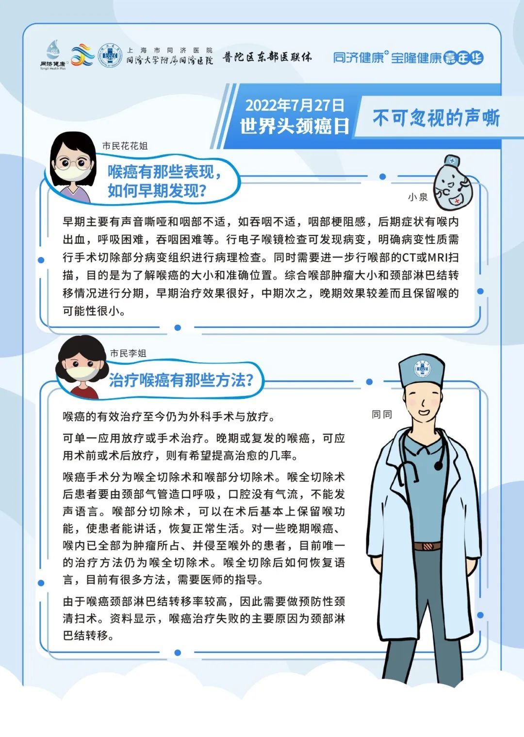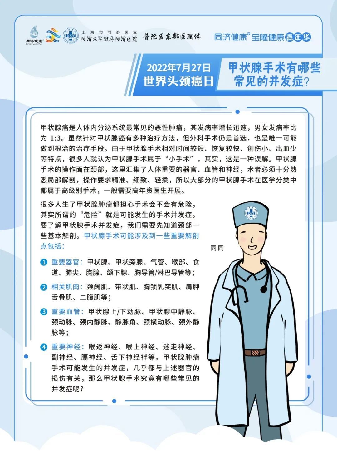 上海市同济医院普通外科甲状腺中心、内分泌代谢科、耳鼻咽喉头颈外科将于2022年7月27日上午9:00在线上联合开展专家科普活动,为大家带来头颈癌的相关科普,希望能对大家有所帮助。