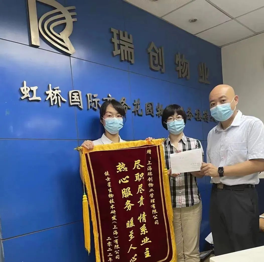 不久前,虹桥国际商务花园内上演惊险一幕,凌晨消防警报响起,值班保安迅速了解情况,找到着火点,最后在10分钟内扑灭火情。日前,发生火情的健士星生物研发公司负责人将一面写有:“情系业主,暖至人心”的锦旗以及一封感谢信送到了新长宁集团瑞创物业虹桥国际商务花园管理处负责人倪旭峰手中,以表达感激之情。