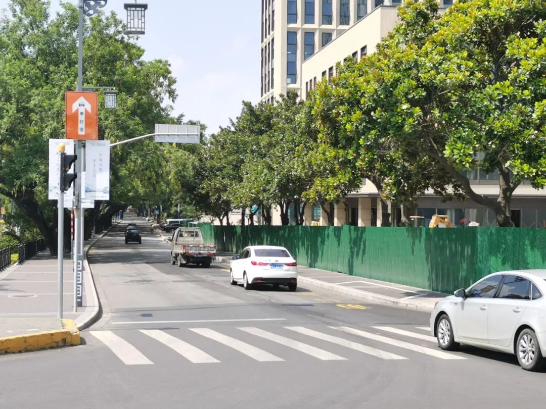 据悉,该处工程将于9月前完工,届时,袜子弄“单行道”设置也将取消,恢复机动车双向通行。