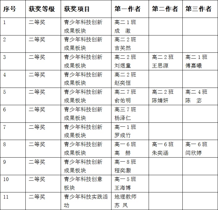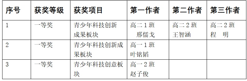 日前,第37届上海市青少年科技创新大赛结束了线上终评,顺利落下帷幕。凭借扎实的科创基础和充分的赛前准备,上海市行知中学师生克服疫情困扰,喜获佳绩,共获38个奖项,其中青少年创新成果一等奖2项、二等奖9项、三等奖21项;青少年科技创意项目一等奖1项、二等奖1项;青少年科技实践活动教师二等奖1项;全国青少年航天科普优秀奖1项;青少年科技创新成果主办单位和政府专项(上海科技馆智慧奖)1项,青少年科技创新成果中学专项奖1项,获奖总数名列宝山区第一名。