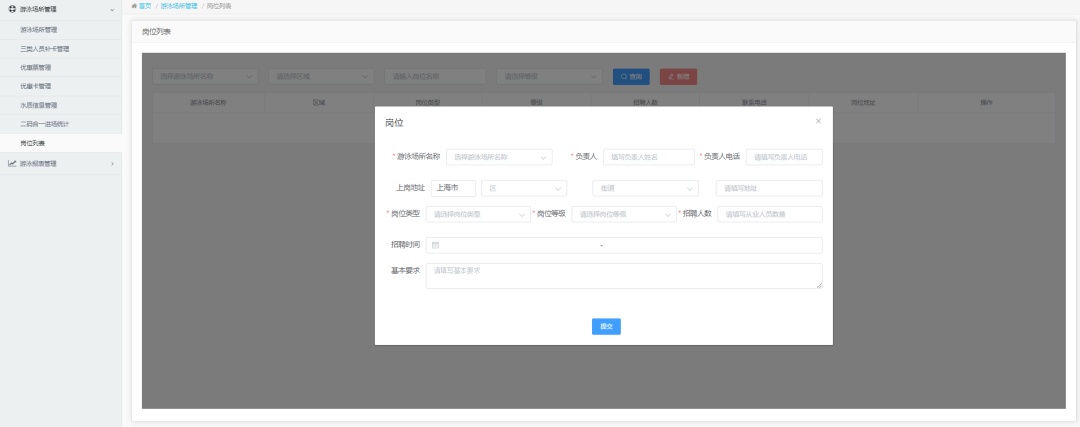 游泳场所在“上海市游泳健身”微信公众号完善基本信息后,需要在网页端发布编辑岗位需求和对救生员的基本要求,招聘信息一经发布,用户即可在手机端查看。