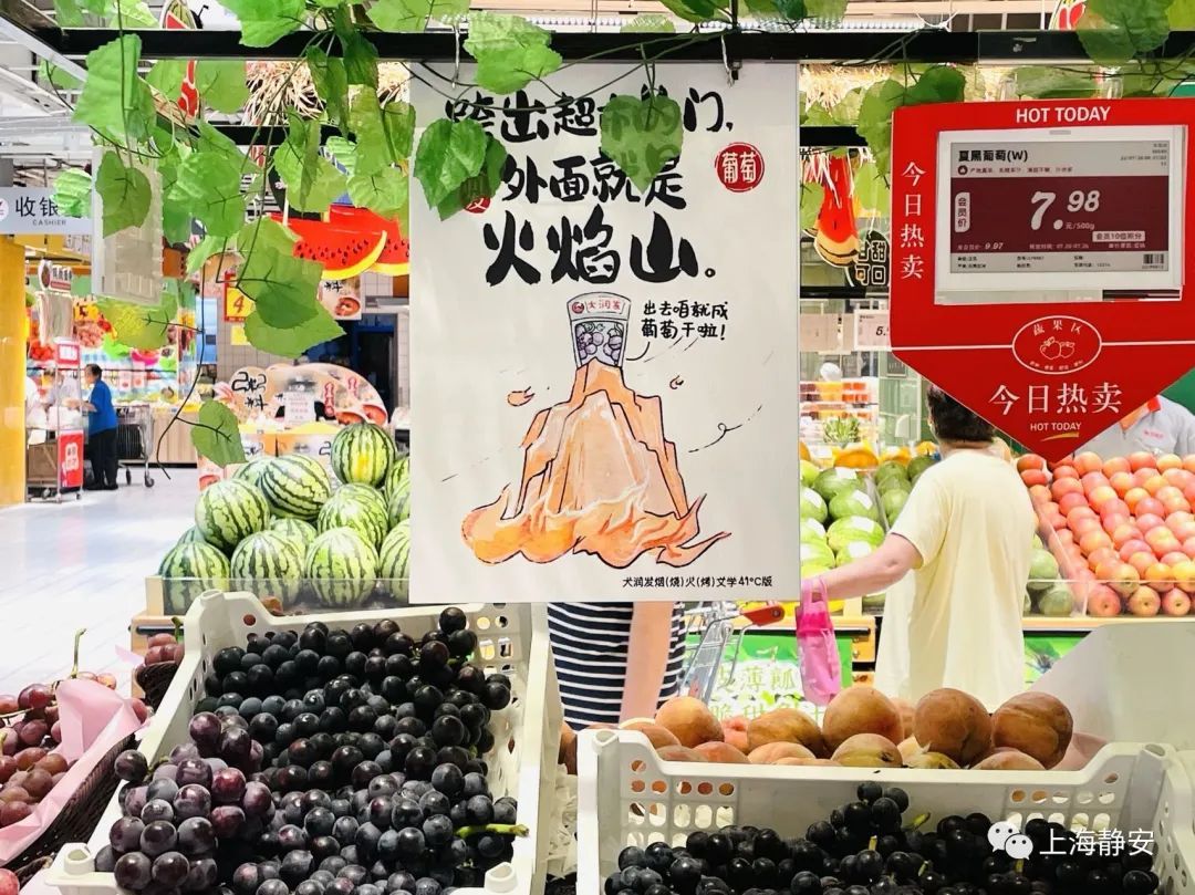 这几天,上海高温天又来了,不少逛超市的市民注意到,除了夏日时令产品外,超市里还多了新的文案——“大润发烧烤文学41℃版”。