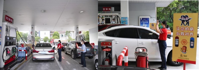 今年以来,中国石化各加油站开展标志标识“亮”化工程,加油站的地标引流线、停车网格线、加油停车示意牌等随处可见,让驾驶员可以轻松到达指定加油停车位。部分加油机已安装4.5米加油皮管及悬挂拉伸器,可实现加油车辆随停随加,即使加油车辆油箱口在泵岛外侧,也可以“轻松”加到油品。
