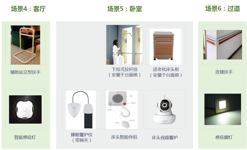 ★ 个性化产品服务包。主要是满足个性化居住环境要求,提供智能家居类、健康监测类等产品及服务,以及局部或全屋适老化施工改造服务。