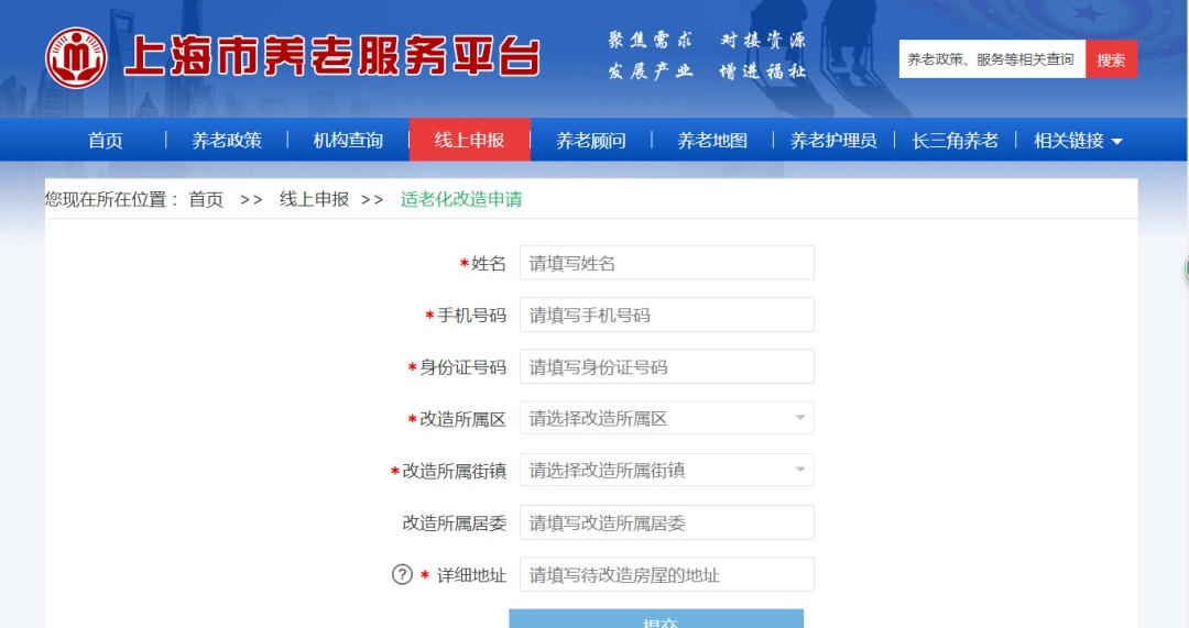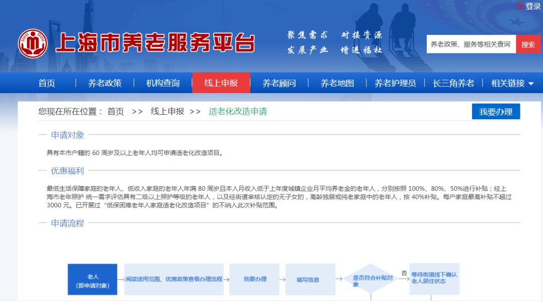 (一)上海市养老服务平台(www.shweilao.cn)——适老化改造专项模块