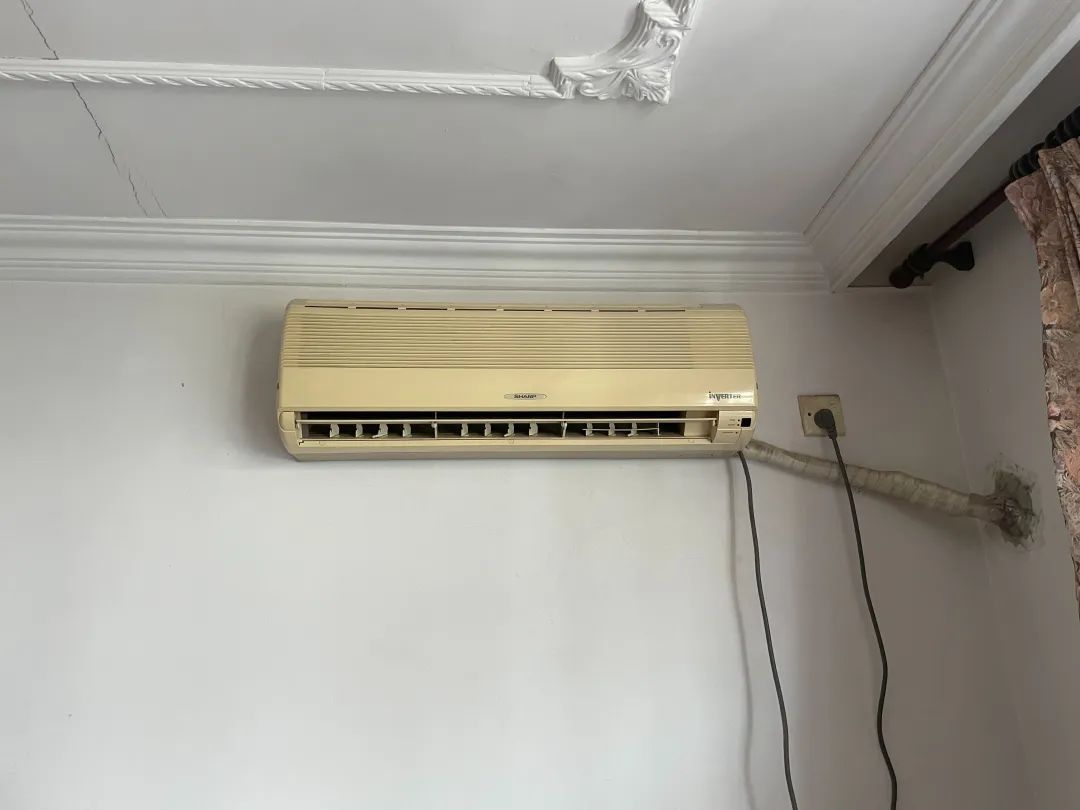 空调外机安装在防盗窗下面,王师傅和同事站在凳子上、探出半个身子,顶着烈日,伸长手去拆开了外壳。检查调试了15分钟左右,他们告诉赵阿姨,因为空调安装使用至今已长达25年,此次是变频板老化损坏引起故障。
