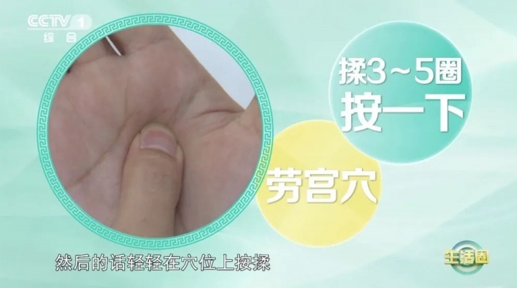 劳宫穴位于手掌心,握拳屈指时,位于中指指尖处。中医讲“心主夏,心与夏气相通”,因此,炎夏养生重在养心,而劳宫穴也被称为“护心穴”。