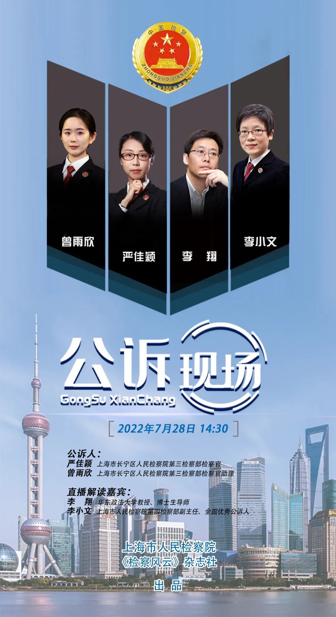 本次庭审直播,我们邀请到了华东政法大学教授、博士生导师李翔和上海市人民检察院第四检察部副主任李小文两位专业嘉宾现场进行解读。