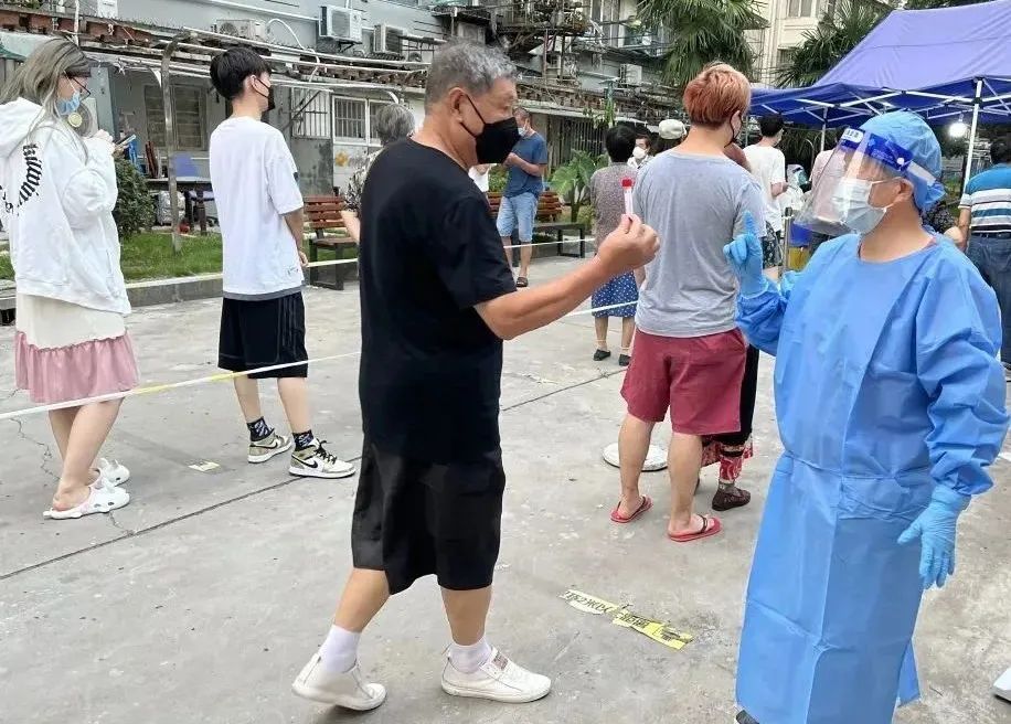 核酸筛查时,总会有居民询问关于防疫的各类问题。上海胧爱文化传播有限公司总裁张庭赫作为志愿者,用热情和耐心一一解答居民的疑问。