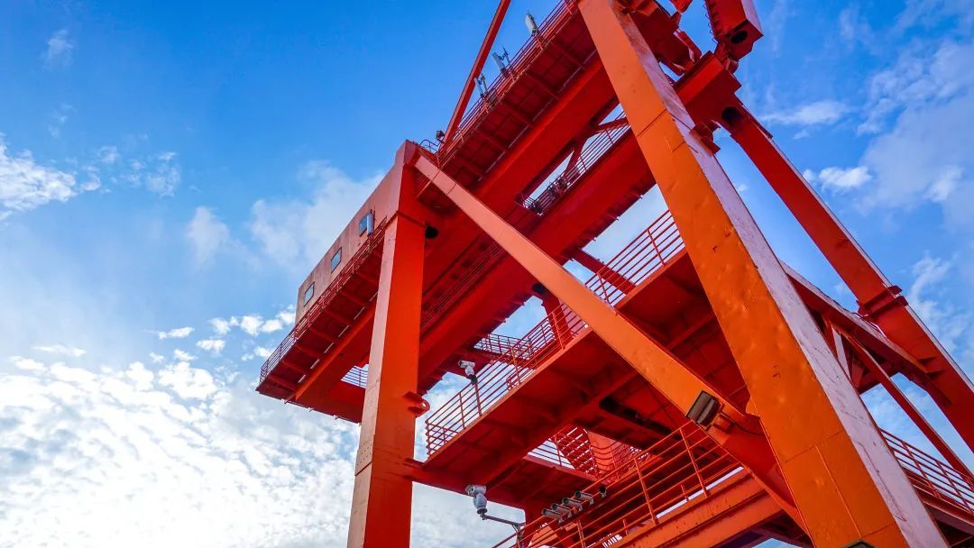 徐汇滨江畔有一条长长的人行天桥,从这里仰拍红色吊塔,可以展现老吊塔的线条结构之美,蓝色天空做背景,格外宏伟。