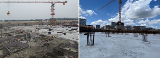 左:项目工地复工复产,右:大底板施工完成