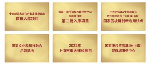 2022年1月列入2022年上海市重大建设项目清单;2022年2月挂牌中央网信办和中宣部牵头 “国家区块链创新应用试点”(“区块链+版权”特色领域)。