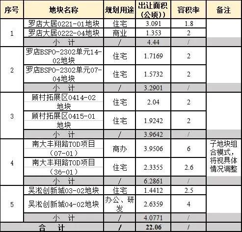 2022年下半年部分重点推进地块