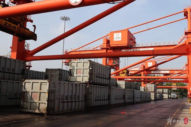 近期,上海高温连连,坐落在宝山的上海环境物流有限公司三分公司(虎林基地),这里的工作人员却24小时坚守岗位,冒着高温处置垃圾。据了解,虎林基地日均运输生活垃圾4000多吨,全部集装水运。