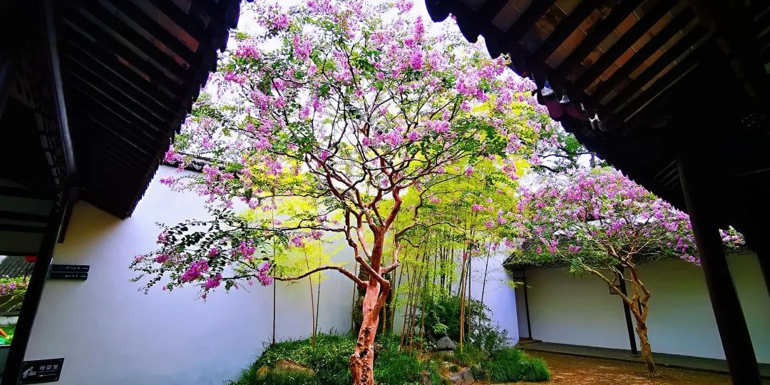 “今天特意过来,这里不仅环境幽静,花开得也好,非常美,不虚此行。”吸引市民杨女士前来游园的除了荷花,还有园中另一夏花主角——紫薇花。曲廊处、池岸边、庭院里、粉墙黛瓦间,只见一株株紫薇开得格外绚烂。尤其是内园当中的紫薇花开繁茂,独树成荫,繁花朵朵,别具韵味。