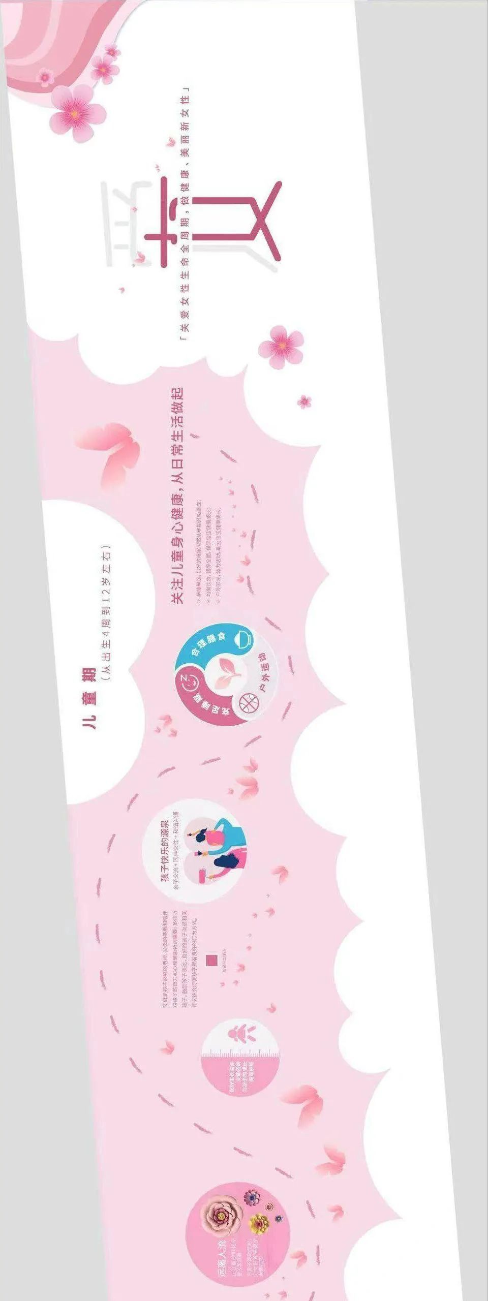 长廊两侧分别展示女性生命全周期和生命初期1000天相关科普内容,“女性生命全周期”部分分为儿童期、青春期、育龄期、更年期和绝经后期五个阶段,“生命初期1000天”部分分为备孕期,孕早、中、晚期,分娩期、产褥期、婴幼儿期七个阶段。实用的内容、清晰的呈现吸引了众多乘客驻足浏览。项目旨在促进妇幼健康水平提升,让女性更加了解关爱自己,让新生命得到科学守护。
