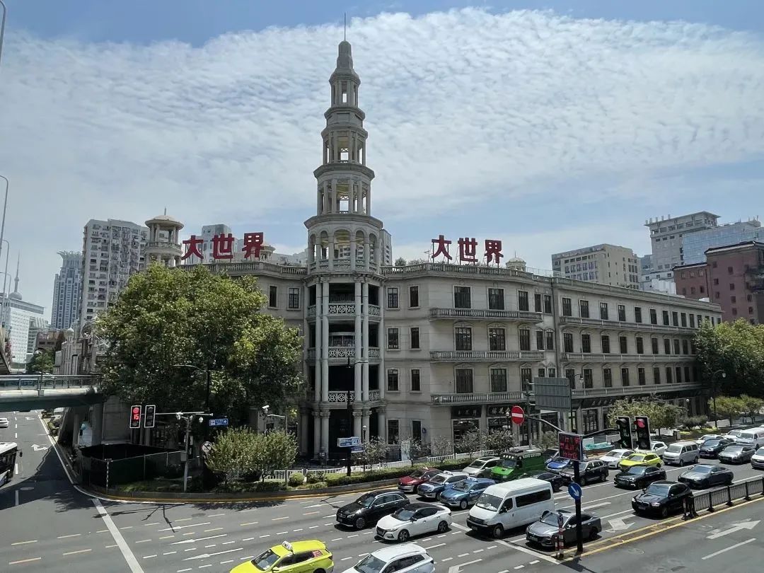站在西藏南路延安东路天桥上,你可以用几乎平视的视角来欣赏大世界的建筑。