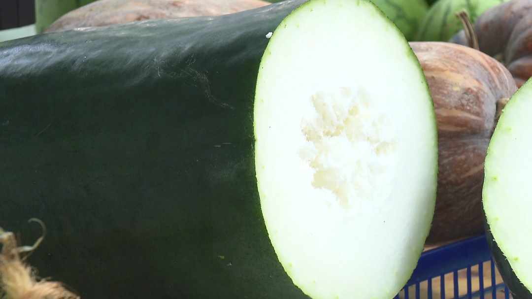 在石化街道隆安农贸市场,摊位上的瓜果蔬菜一应俱全,丝瓜、冬瓜、黄瓜、茭白等清热解暑的时令蔬菜,都被摆在了较为显眼的位置,深受顾客青睐。据经营户介绍,入伏以后,市民都较倾向选择一些含水量较高的蔬菜,以冬瓜为例,她的摊位上一天能卖出超过50公斤的冬瓜。
