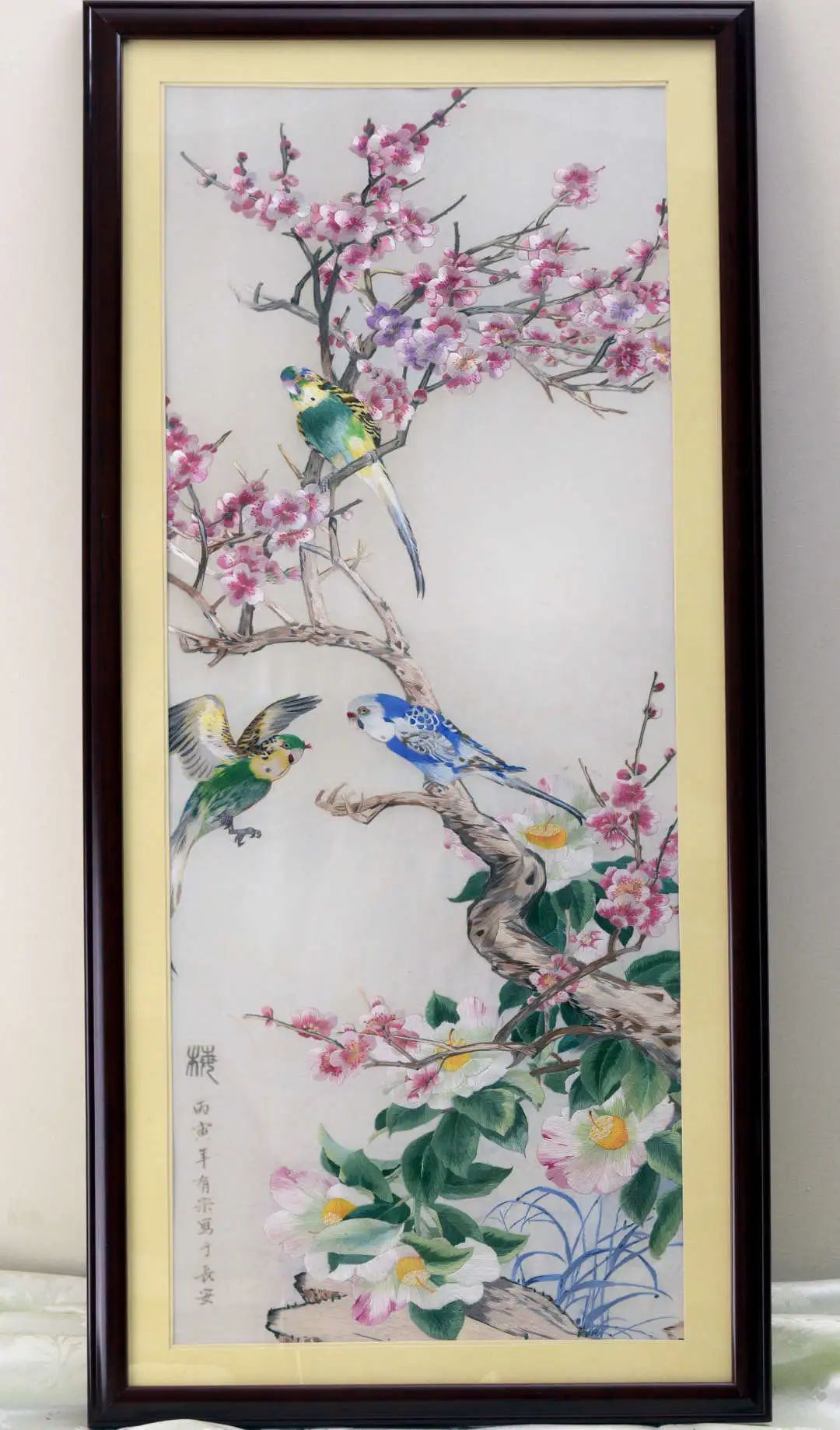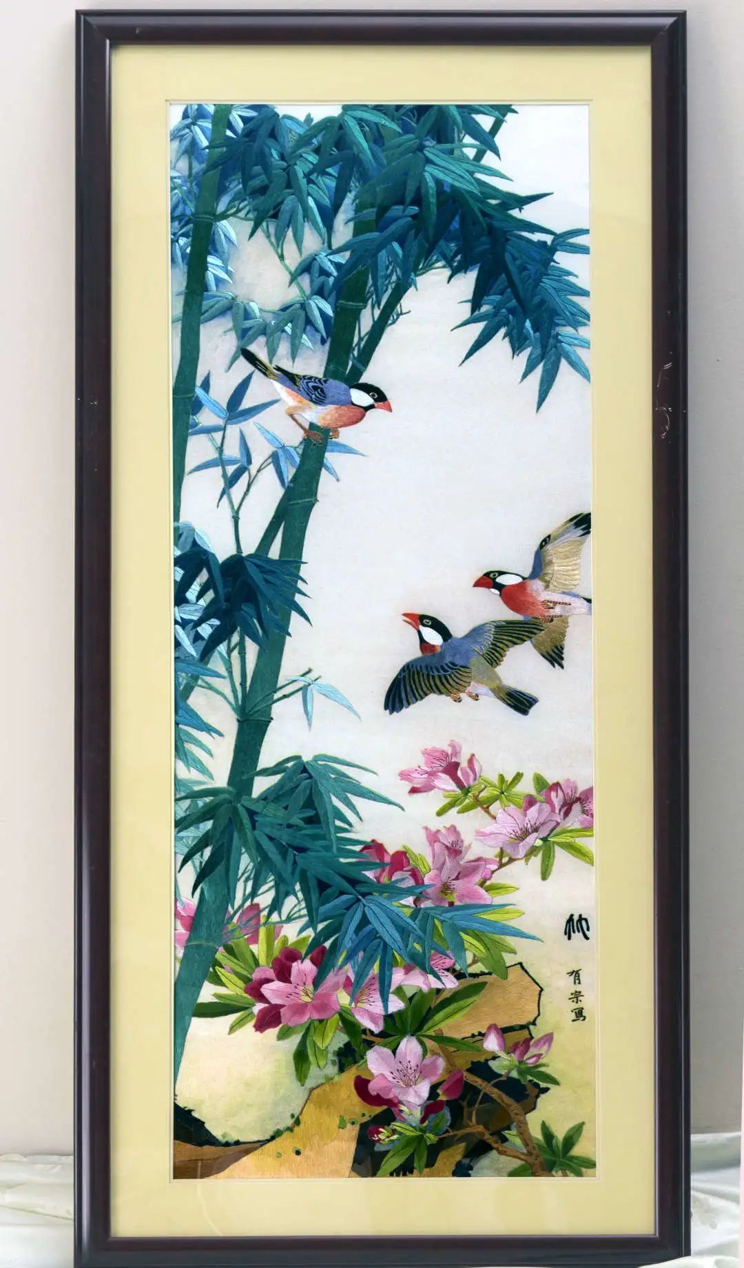 苏绣,是以苏州为集散中心,遍及江苏全境的一种 刺绣工艺。苏绣是以造型、图案、画稿、针法、绣法、色彩、技术、装裱等多方面的综合体现。刺绣者通过针 法的运用,色彩的搭配,构图的把握等,呈现最纯粹的真善美。