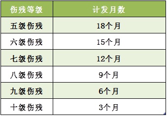 一次性工伤医疗补助金计发标准=计发月数×上年度本市城镇单位就业人员月平均工资,计发月数如下: