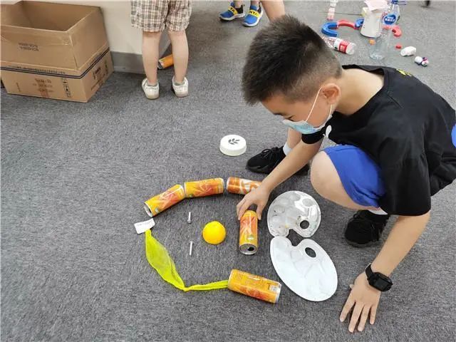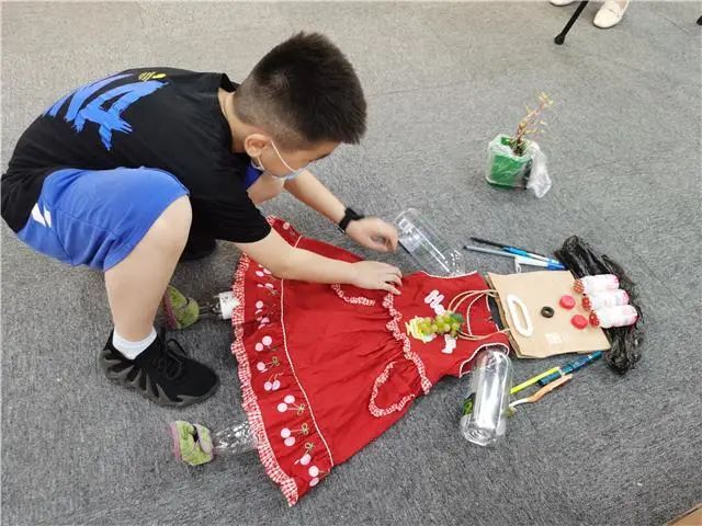 此次活动还以互动模式展开现场教学,学生们发挥各自想象,把废旧物品进行“二次创作”,使环保理念在心中生根发芽。