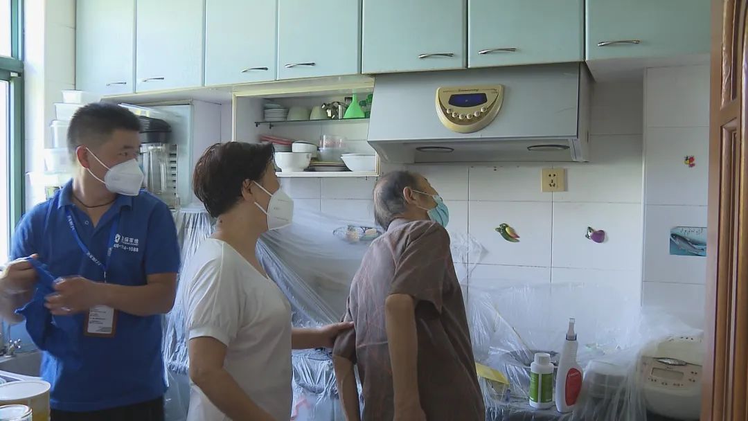 杨叔叔看见工作人员认真仔细地把家里的空调、过滤网罩、抽油烟机进行检修和清洗,连连表示感谢:“大热天给我清洗空调,洗得特别好,特别干净。楼组长叶阿姨非常关心我们,经常会问‘最近有什么事需要帮助’,生活在这里,感到很亲切很开心。”