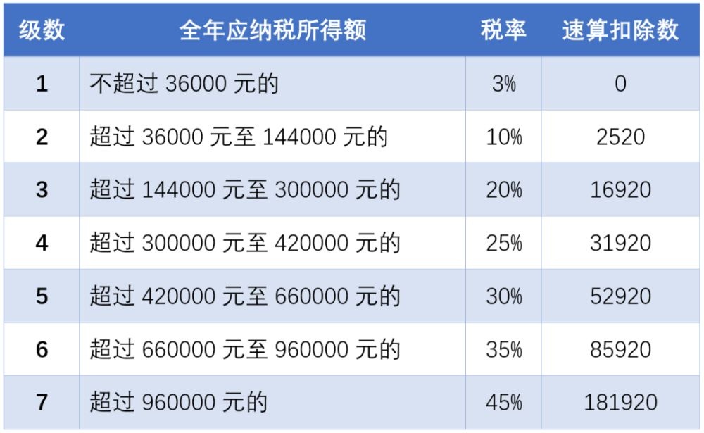 图 综合所得税率表