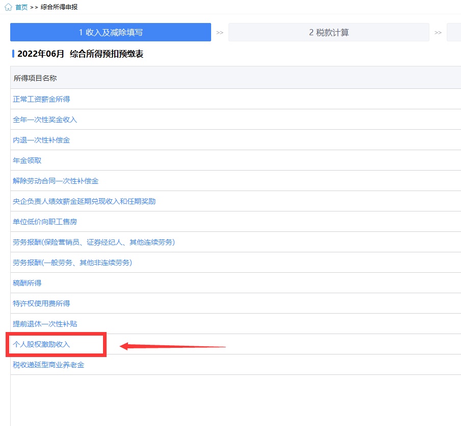 第二步:点击进入【个人股权激励收入】模块。