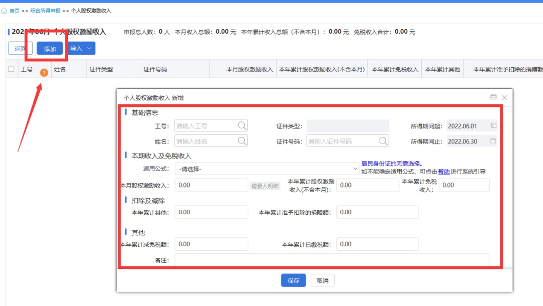 第三步:新增收入信息。根据实际填写“基础信息”、“本期收入及免税收入”、“扣除及减除”、“其他”,并保存。