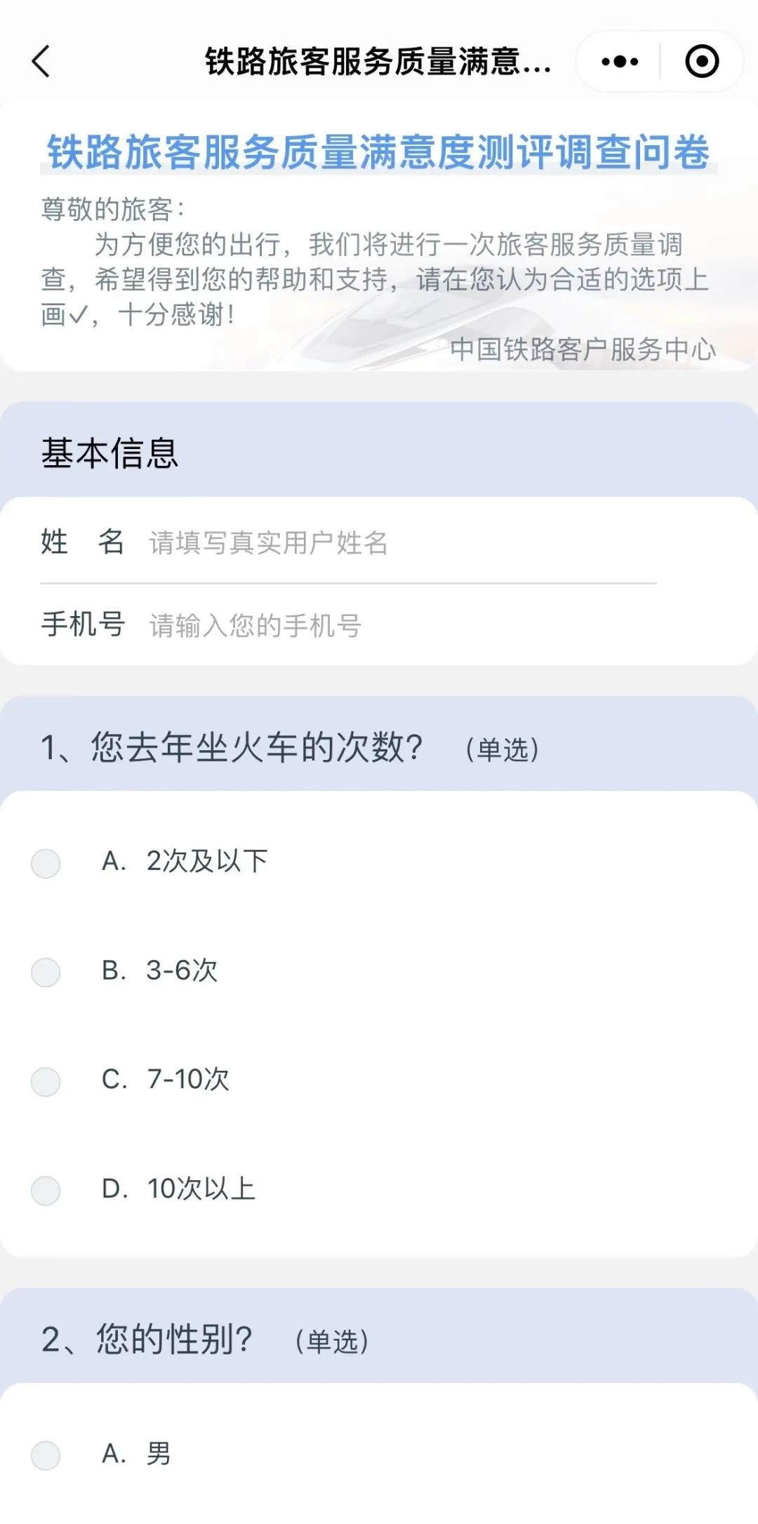 铁路旅客服务质量满意度