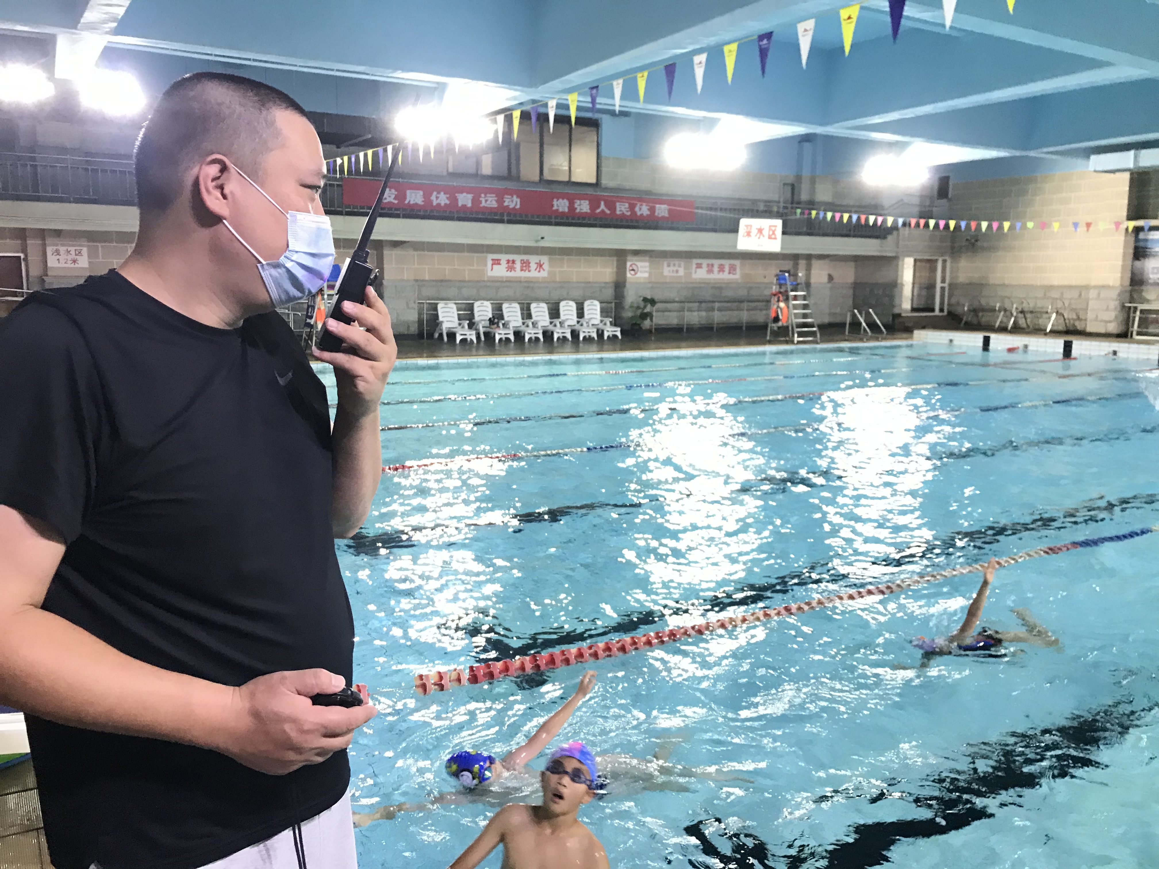 “腿踢快一些,头不要动,不要摇。”训练现场,区游泳队教练员张丽正细致地指导队员训练,张丽介绍,自游泳馆恢复开放,区游泳队便进入了备战集训状态,目前全队65名注册运动员全部到位,实行一天两练,以迅速恢复竞技状态。
