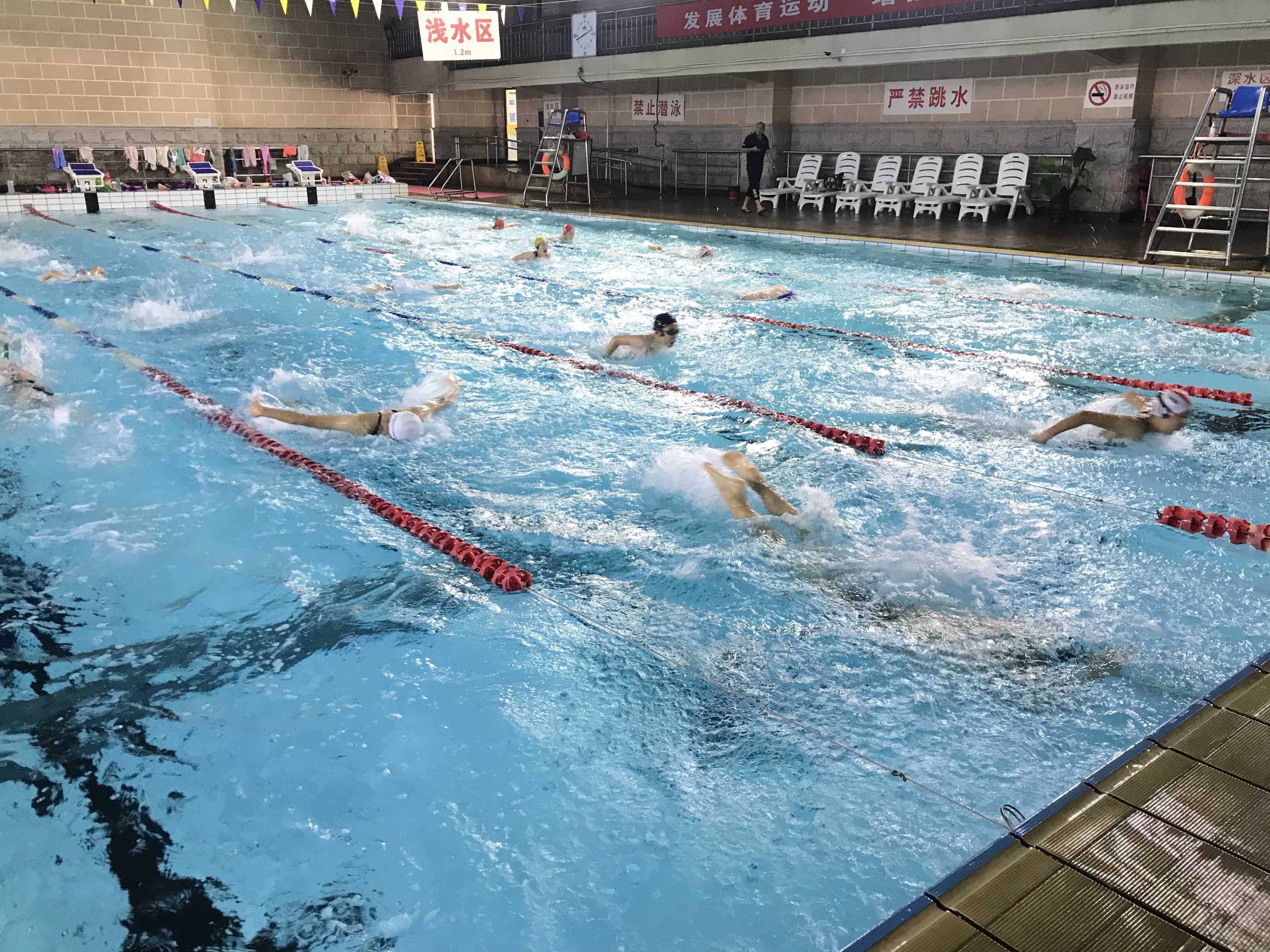据介绍,区游泳队运动员在本届市运会将参加a组、b组、c组、d组和e组的比赛。为了创造佳绩,不少运动员每天训练强度超过万米,比赛目标也瞄准了市运会的金牌。“我这次报的项目是100米蛙泳,平常的训练量大概是一万到一万两千米,希望这次能够拿一块金牌回来。”区游泳队运动员车恩晶说。