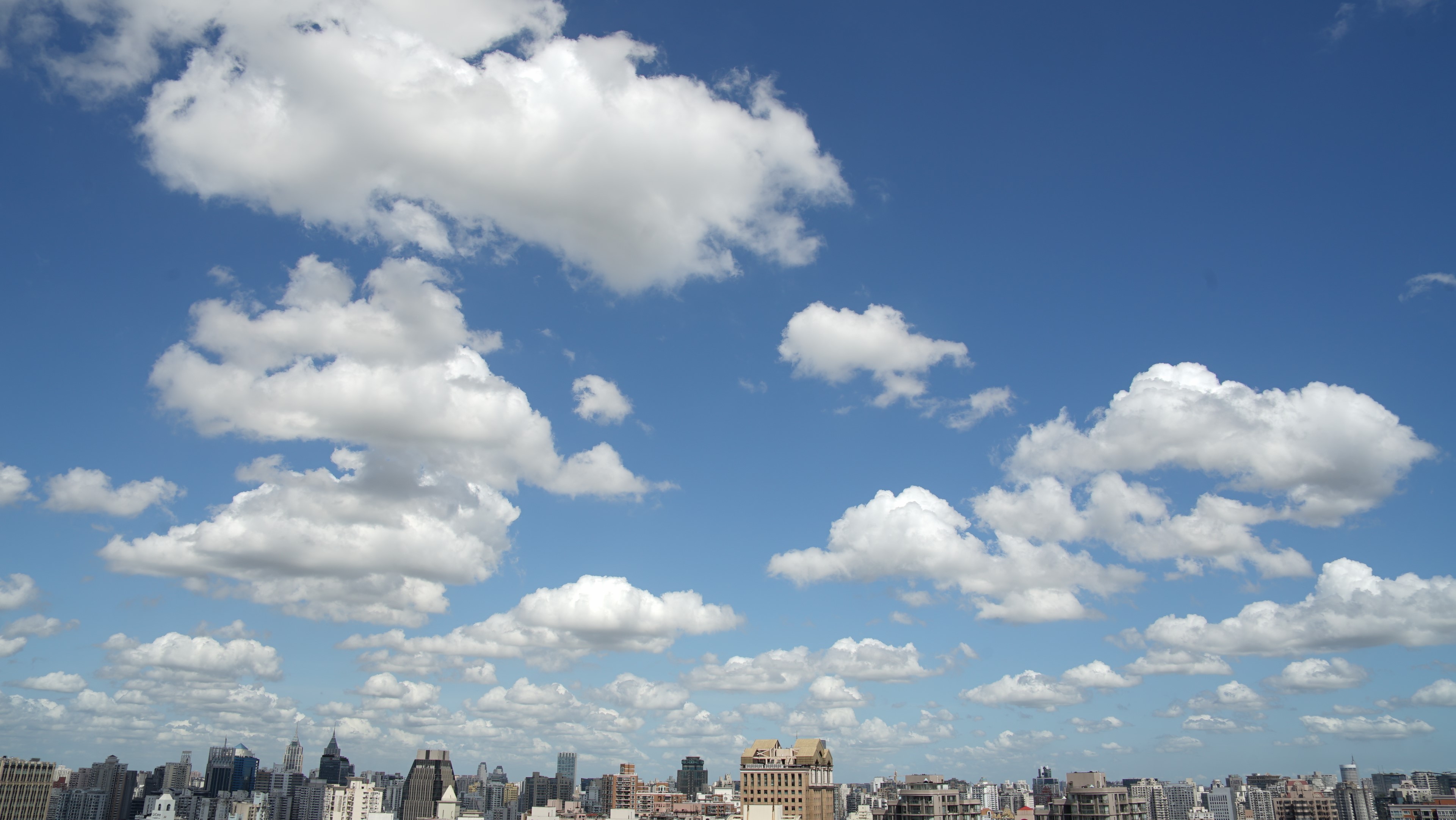 受海上东风系统的影响,上海近日来云系较多,高温天气得到缓解。风系带来的清新空气让上海的天空出现了望不到尽头的蓝天白云。