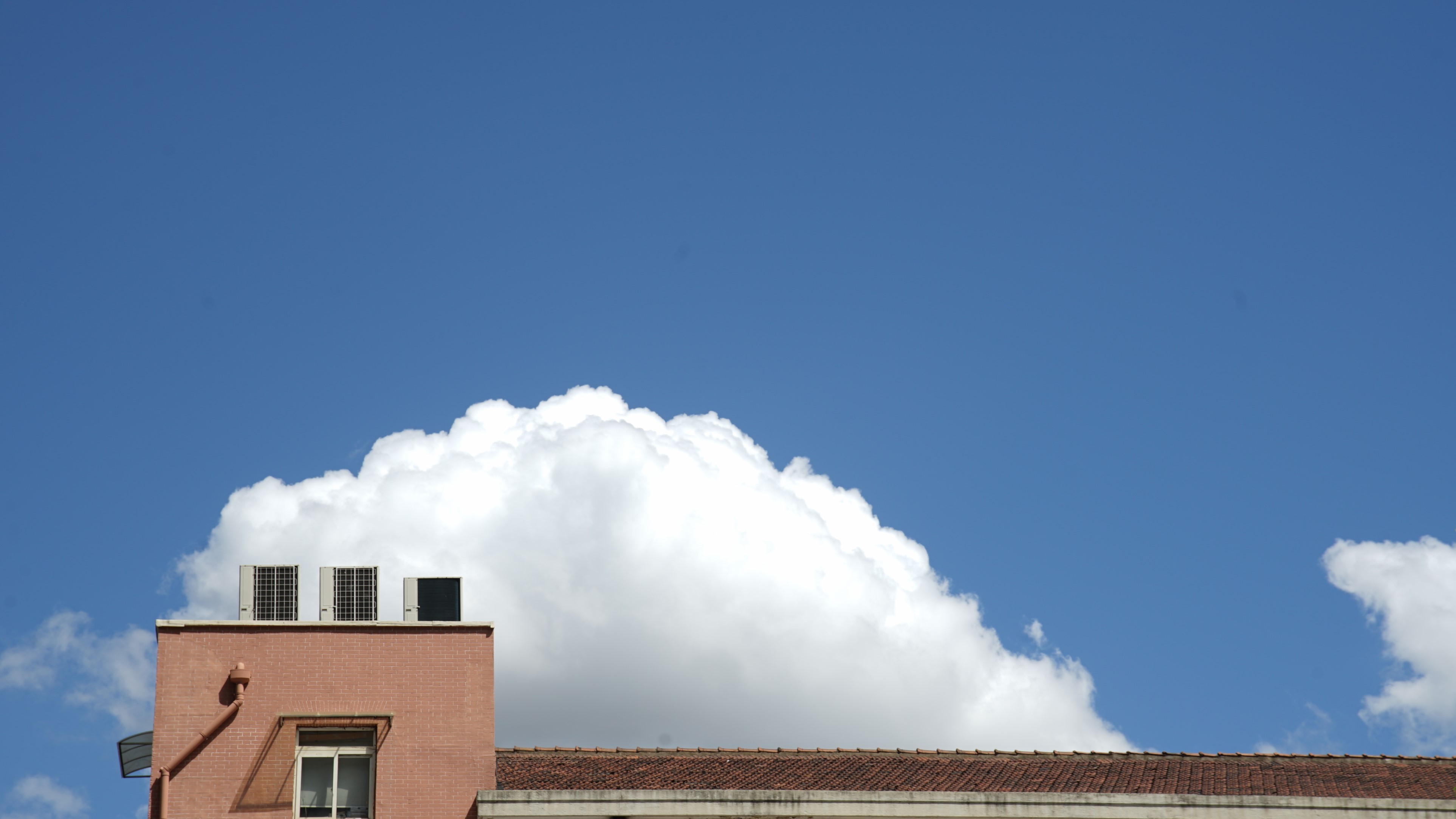 抬头看看天,大朵大朵的白云仿佛穿过楼宇和树冠,带来片刻阴凉。