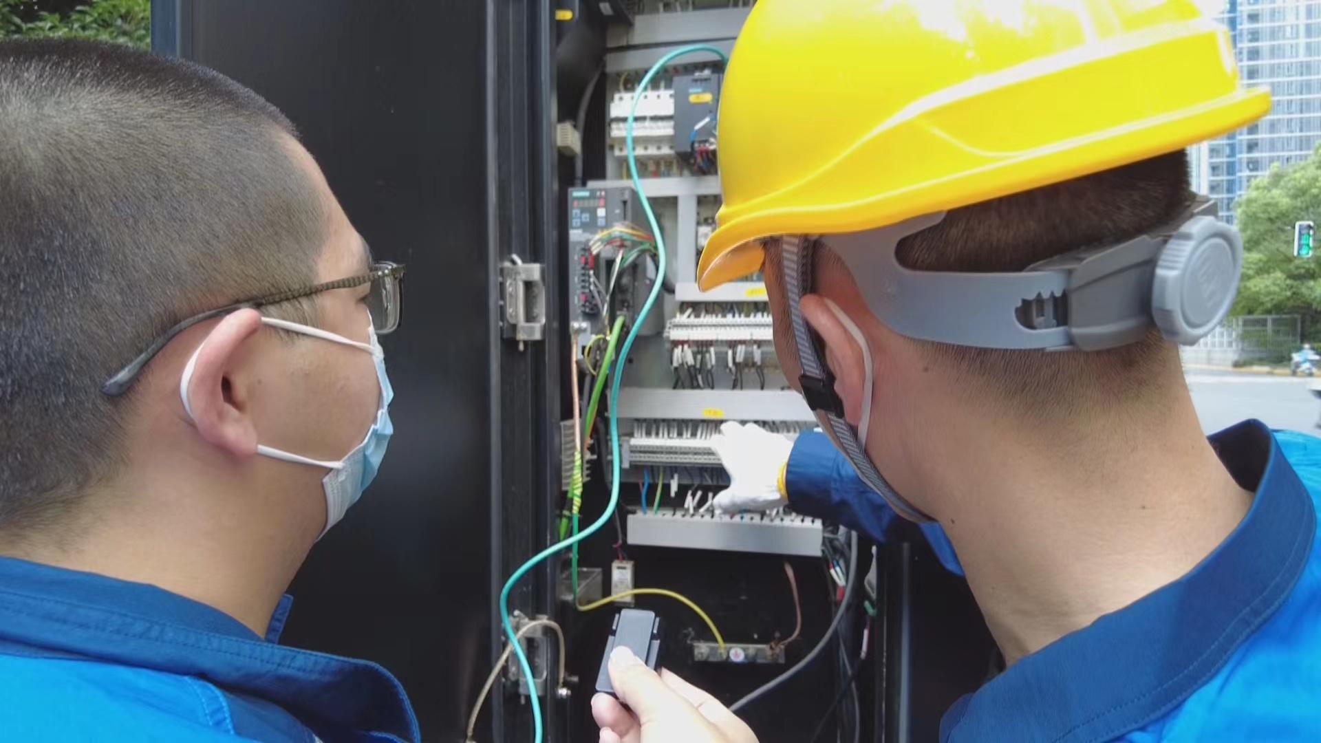 在位于老西门的公交11路终点站,抢修人员首先打开充电箱,连接电脑段,对各个充电接头等进行检测,如果有问题,电脑端会显示异常,工作人员将分析原因进行维修。