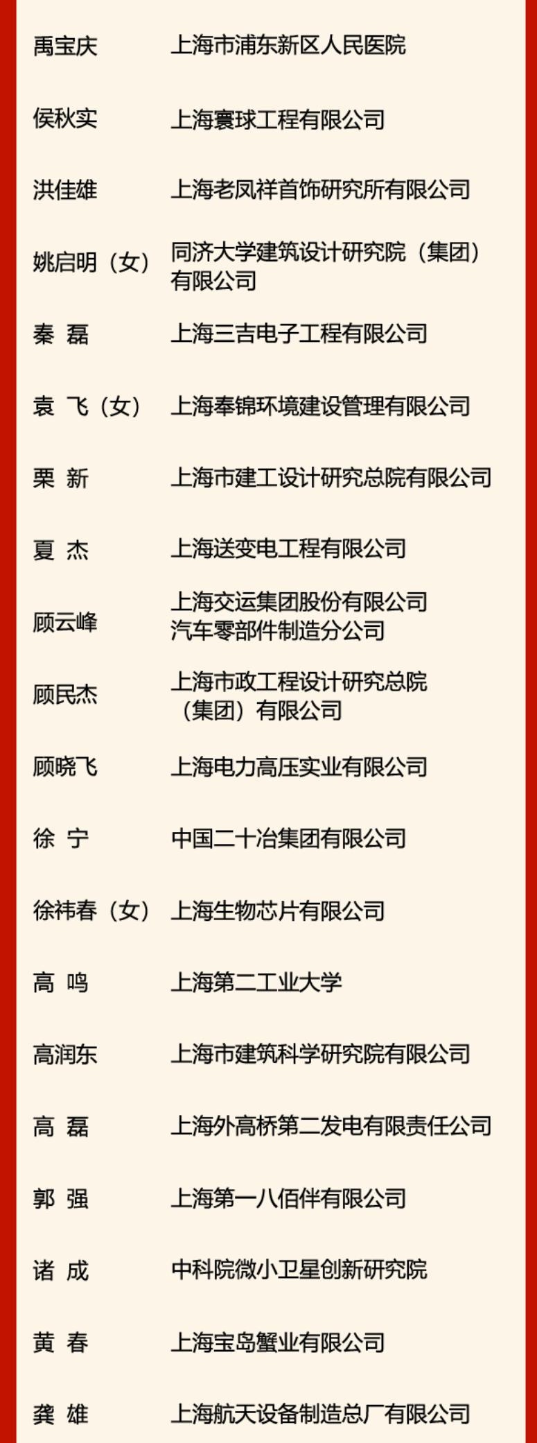 上海市总工会介绍,2021年本市诞生的103名“上海工匠”平均年龄45岁,最大59岁,最小30岁;平均工作年限22.9年。