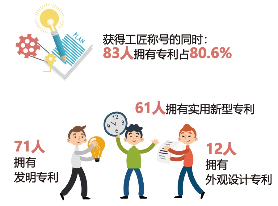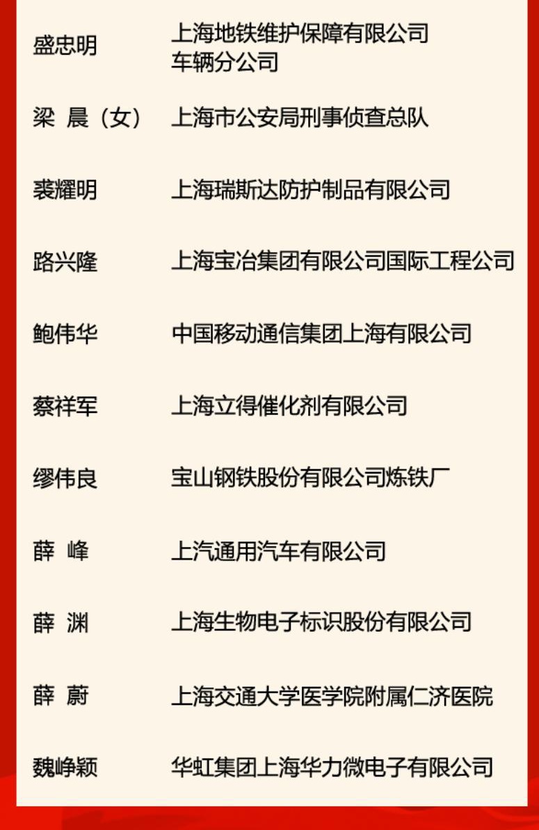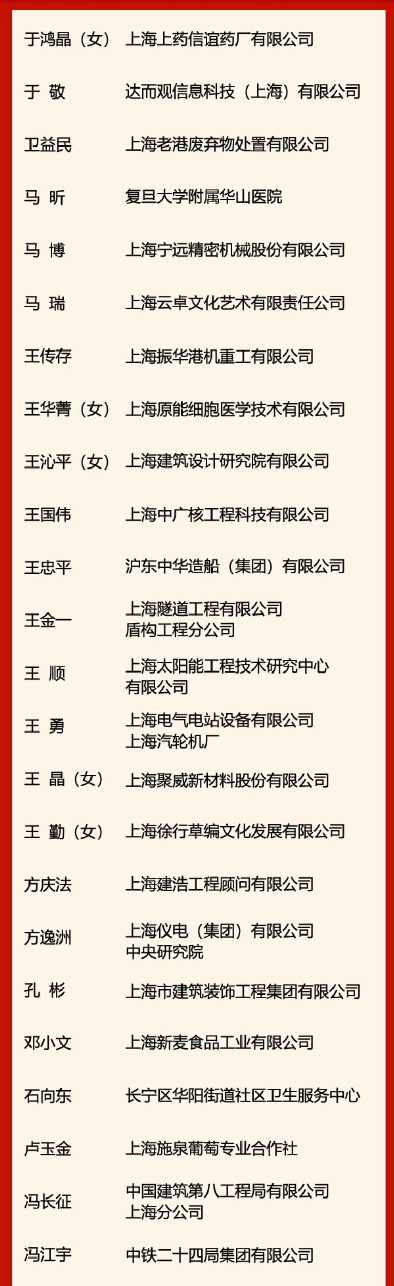 103名上海工匠中,全国劳模3人,上海市劳模11人,部级劳模4个。全国五一劳动奖章2个,上海市五一劳动奖章16人。
