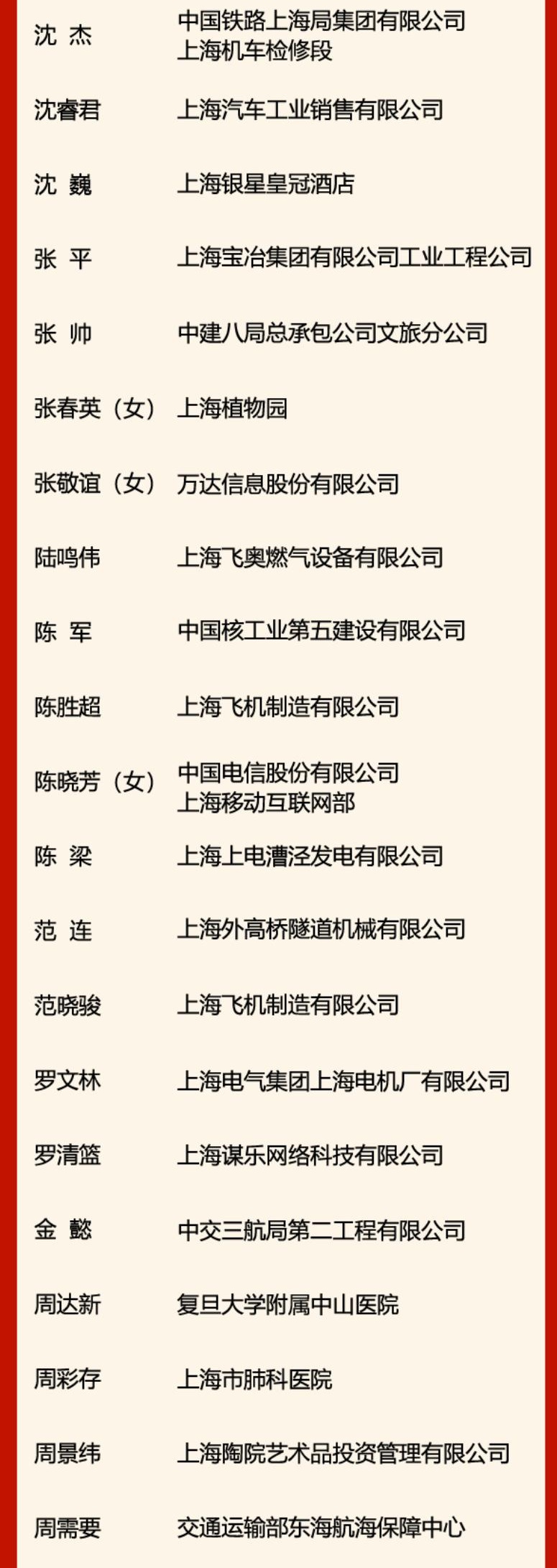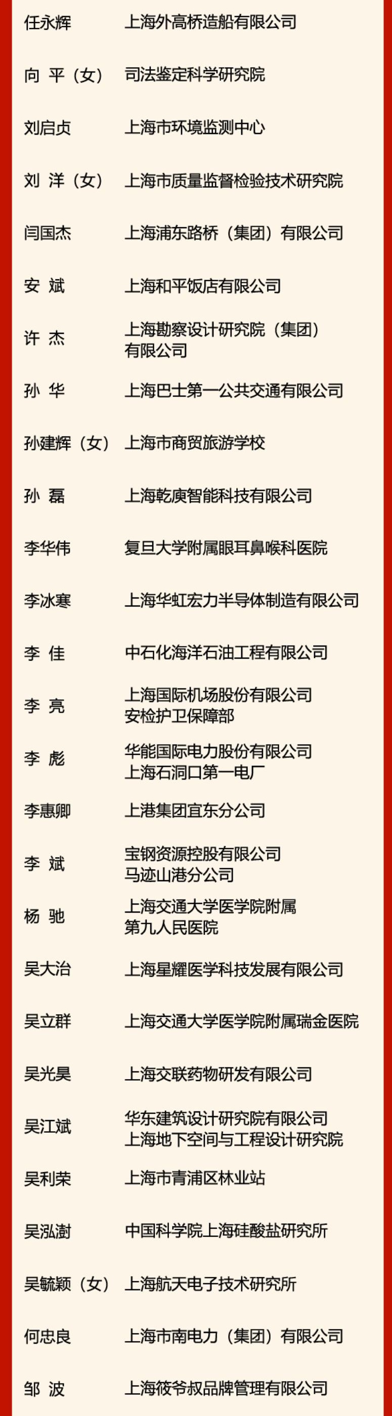 103名上海工匠来自54家区局(产业)工会和3个行业协会推荐,其中5人为个人自荐;