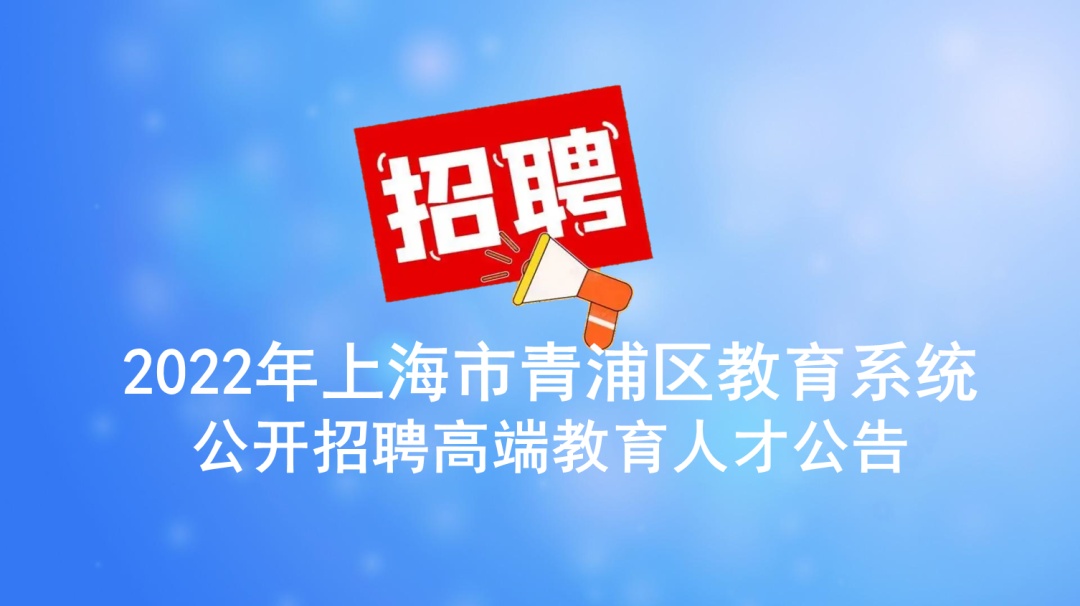 根据上海市人力资源与社会保障局《关于印发<上海市事业单位公开招聘人员办法>的通知》(沪人社规〔2019〕15号)的精神及要求,结合青浦区教育事业发展的需要,现面向全国招聘高端教育人才。