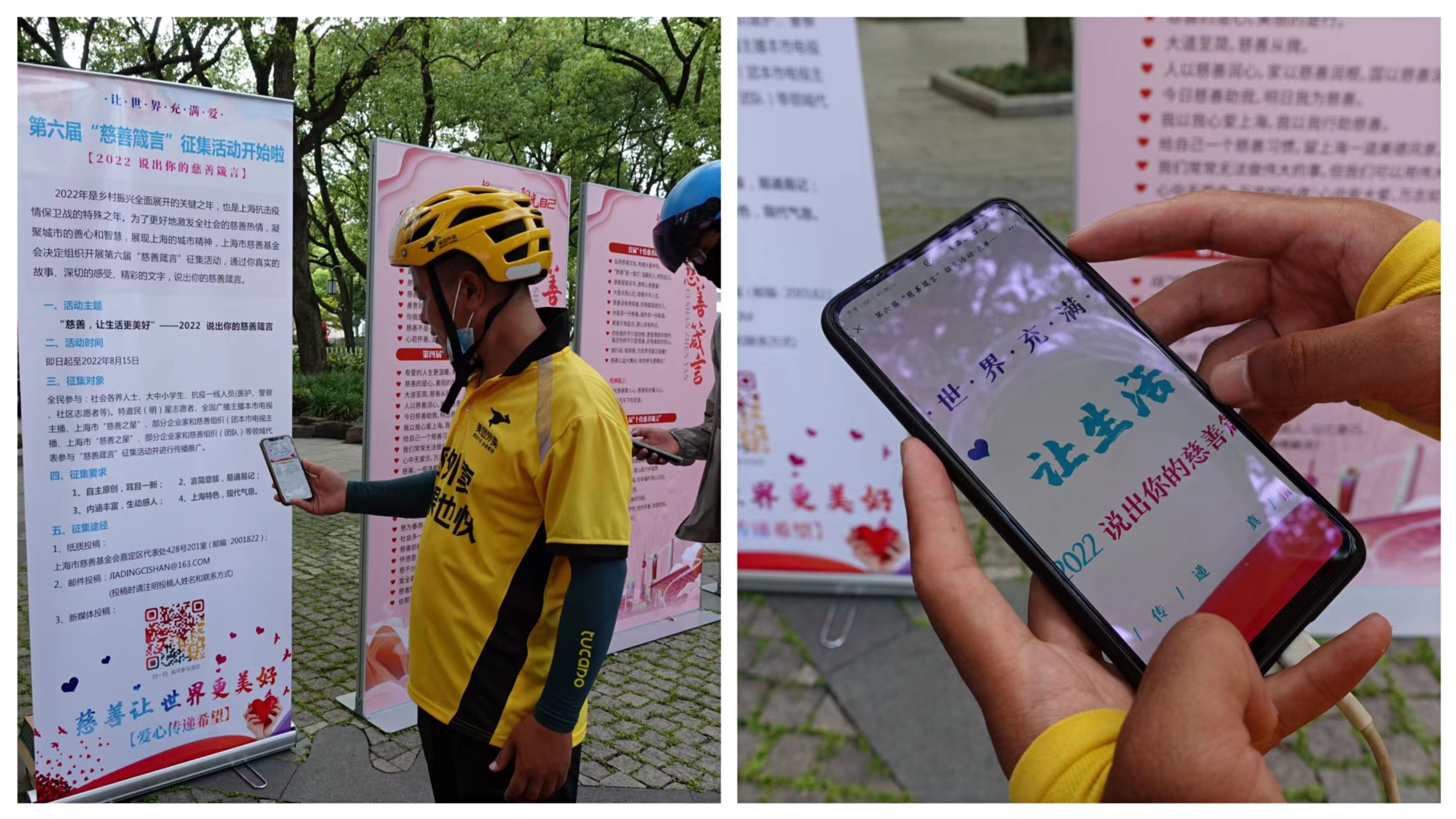 第六届“慈善箴言”征集活动也在当日下午进行中。为更好地激发全社会的慈善热情,凝聚城市的善心和智慧,巩固提升文明城区创建成果,慈善基金会嘉定区代表处于2022年7月至2022年8月15日在本区域内组织开展第六届“慈善箴言”征集活动,将根据投稿人箴言的数量和被评选入用的情况分别予以奖励。“慈善,让生活更美好”——2022,说出你的慈善箴言,欢迎社会各界人士积极参与。