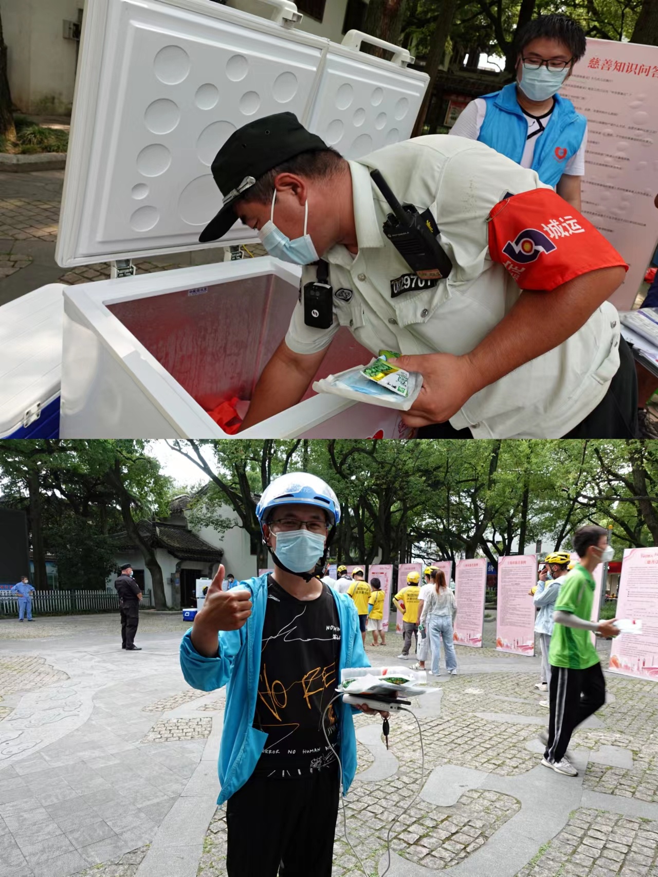 时值三伏高温季,在慈善文化宣传的同时,为户外工作者赠送口罩、冷饮、矿泉水等防疫清凉用品,将这份城市清凉传遍疁城街头。