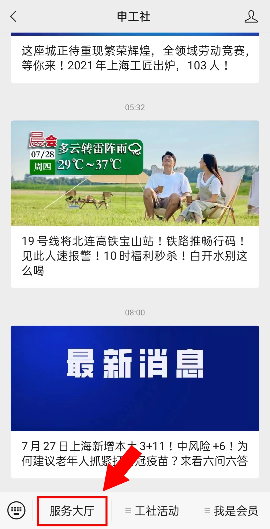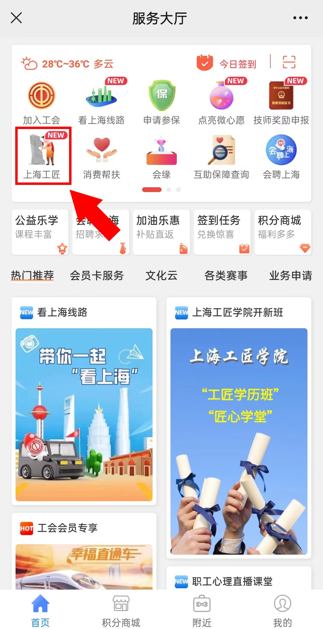 进入“申工社”微信公众号,点击菜单栏【服务大厅】—【上海工匠】,填写个人信息进行提交;