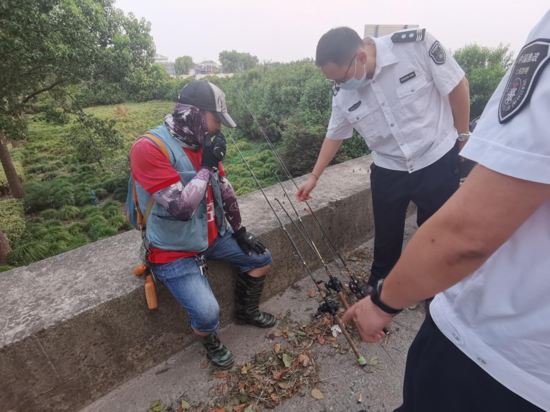 7月27日,通过智能管控系统发现告警的线索,执法总队联合崇明区农业农村委执法大队对重点水域开展违规垂钓突击行动,执法人员“水上赶、岸上堵”,成功查获5名在禁钓区垂钓人员。