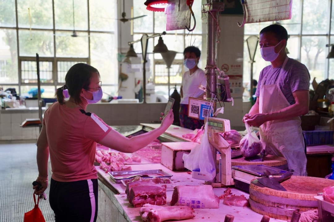 练塘菜市场也于近日恢复运营,进入菜场,经营户身穿防护服、佩戴口罩和手套等,防护措施十分到位。新鲜肉类、水产、豆制品、蔬菜等货源充足,应有尽有。水产摊位前,活蹦乱跳的鲜鱼在盆子中吐着气泡,吸引了不少市民前来光顾,经营户则忙碌地给顾客装袋,各类摊位让广大市民找到久违了的亲切感。