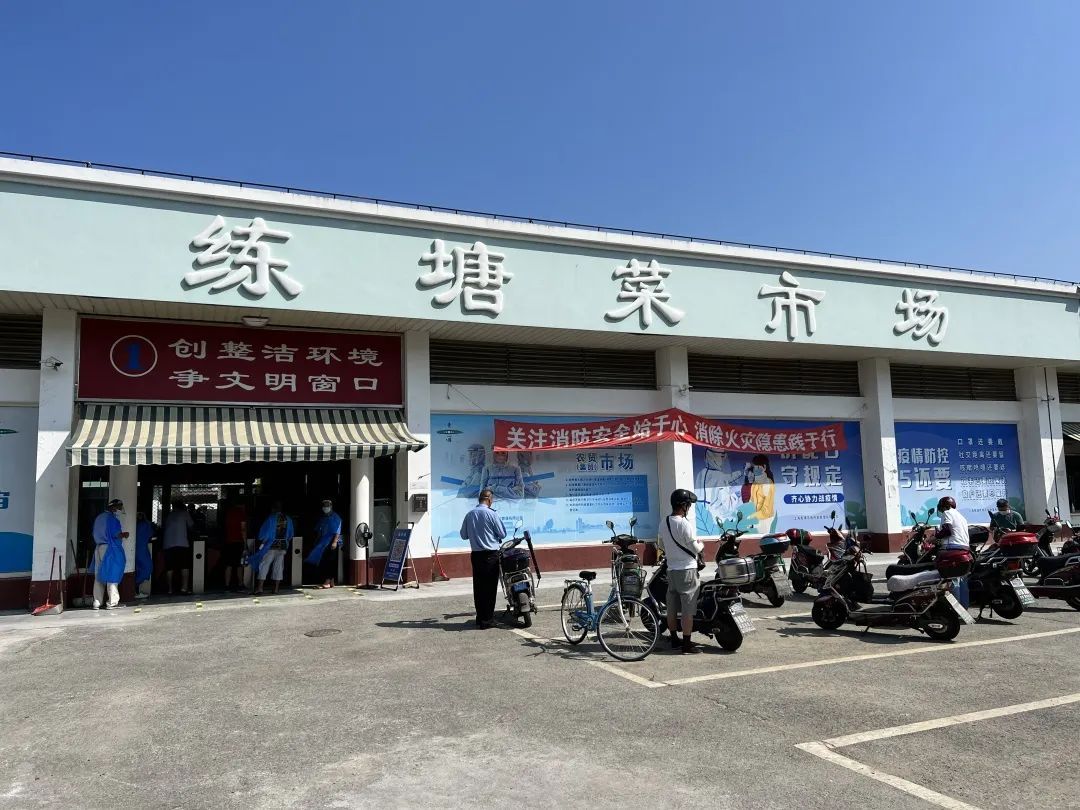 目前,练塘菜市场的营业时间为早上5:00至中午12:00。菜市场关乎千家万户的“菜篮子”,更是疫情防控的“重要阵地”。为此,练塘镇从严从实落实好常态化疫情防控各项举措,对复市后经营模式、人员管理与清洁消杀等工作进行全面安排部署。加强督导检查,完善入市商品索证索票和查验制度,确保进货渠道明确,商品质量合格。规范做好环境消杀、强化应急处置,切实筑牢疫情防控坚固防线,确保菜市场安全有序运行。