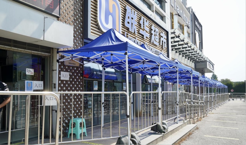 市场入口处,贴心设置等候通道,便于居民有序排队等候入场。同时,为进一步落实防疫要求,市场在同一时间段内顾客人数严格限制在60人以内,并安排志愿者温馨提醒顾客在购物时保持安全距离,不扎堆不聚集,采买完毕后尽快离场。