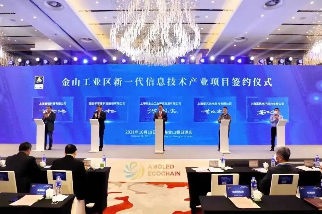 近年来,金山区着力塑造信息技术特色产业品牌,围绕龙头企业上海和辉光电股份有限公司,精心培育南上海新型显示产业园,新型显示产业集群效应显现。2021年6月,新一代信息技术产业项目集中签约仪式在高新区举行,签约项目技术含量高、附加值大,对金山拉深、拉长新一代信息技术产业链,提升产业发展能级,加快产业集聚发展具有重要意义。目前,上海新型显示特色产业园已汇聚了奥来德,升翕光电、九山电子等上下游配套项目近30个,产业链从上游的材料、设备、组件到下游的智能终端应用等领域已全部覆盖。